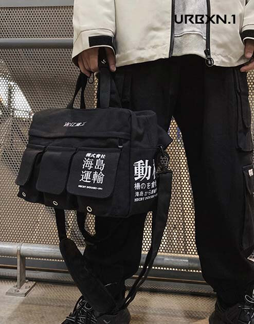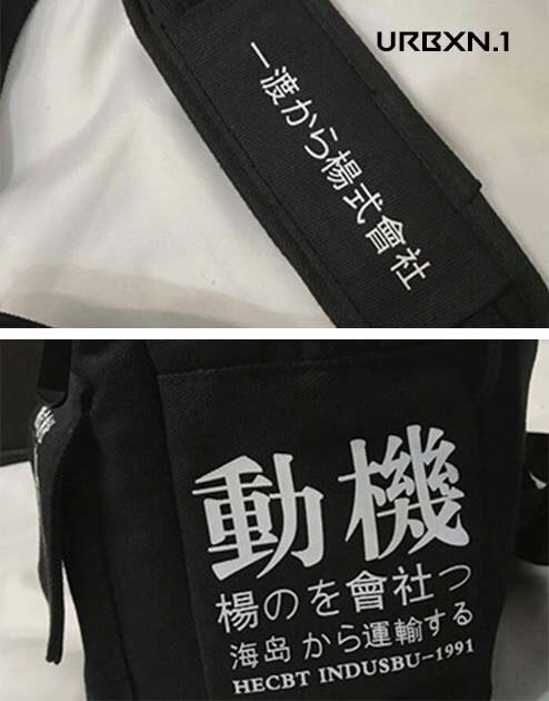 Idealna do noszenia wszystkiego, czego potrzebujesz, ta azjatycka torba w stylu streetwear jest także modnym dodatkiem. Estetyczny dodatek, który uzupełni strój w stylu techwear, nadając mu w pełni miejski wygląd, a jednocześnie dodając azjatycki akcent w postaci napisów kanji.