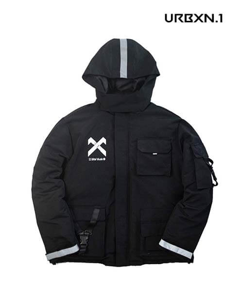 Ta kurtka techwear z kapturem jest niezbędna, aby spędzić zimę w dobrych warunkach. Duża wyściełana kurtka o bardzo innowacyjnej konstrukcji. Z przodu płaszcza i na lewym rękawie znajdują się duże kieszenie. Paski odblaskowe na kapturze i końcach rękawów. Na kieszeniach można również przypiąć paski do taktycznych zastosowań miejskich.