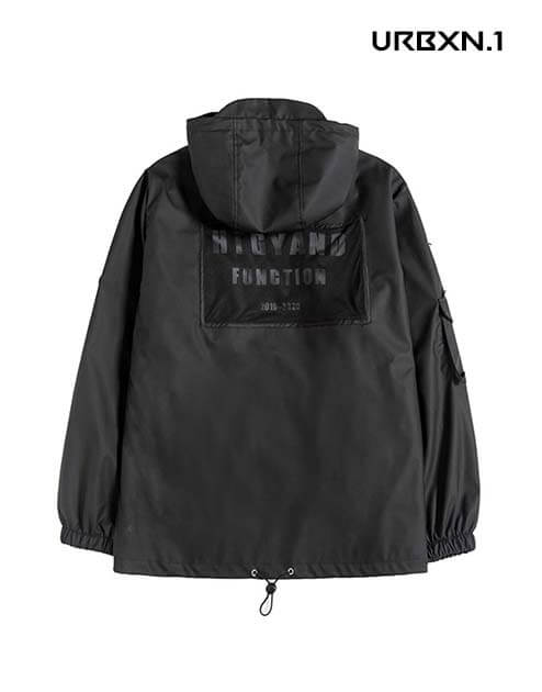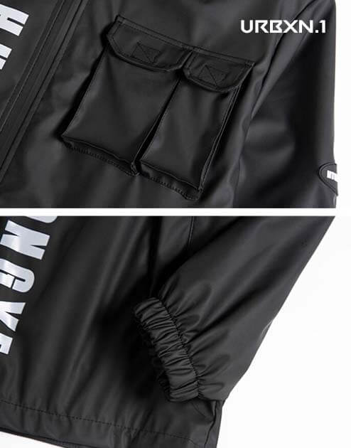 Niezbędna w Twojej szafie, wodoodporna i chroniąca przed wiatrem kurtka techwear z kapturem. Wzornictwo jest futurystyczne. Rękawy są szerokie, ale ściągnięte w nadgarstkach. Kaptur można regulować do żądanego rozmiaru za pomocą sznurków ściągających. Uchroni Cię to przed nagłym pogorszeniem pogody.