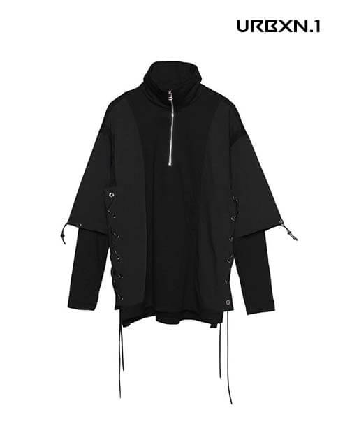 Załóż ten sweter z golfem w stylu techwear, aby uzyskać w pełni miejski wygląd. Rękawy są średniej długości i dają zwodniczy efekt dwuczęściowości. Zamek błyskawiczny znajduje się od klatki piersiowej do górnej części kołnierza. Dodatkową zaletą są sznurki ściągające po bokach, które nadają jej nowoczesny wygląd rodem z filmów science fiction.