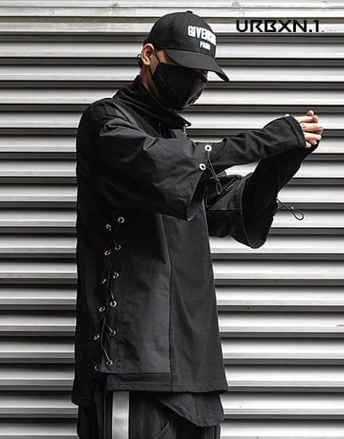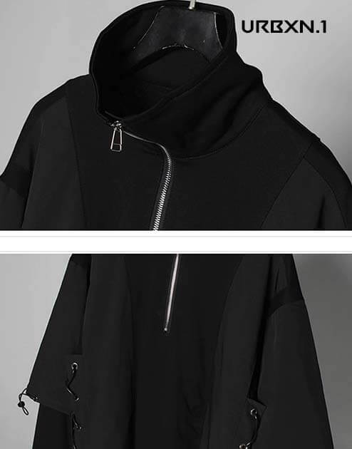 Odkryj tę bluzę techwear z zamkiem błyskawicznym i wysokim kołnierzem w bardzo miejskim stylu. Ubiór inspirowany kulturą streetwearu, występującą głównie w krajach azjatyckich. Ten futurystyczny i niepowtarzalny top można nosić ze spodniami w stylu techwear i małą parą trampek.